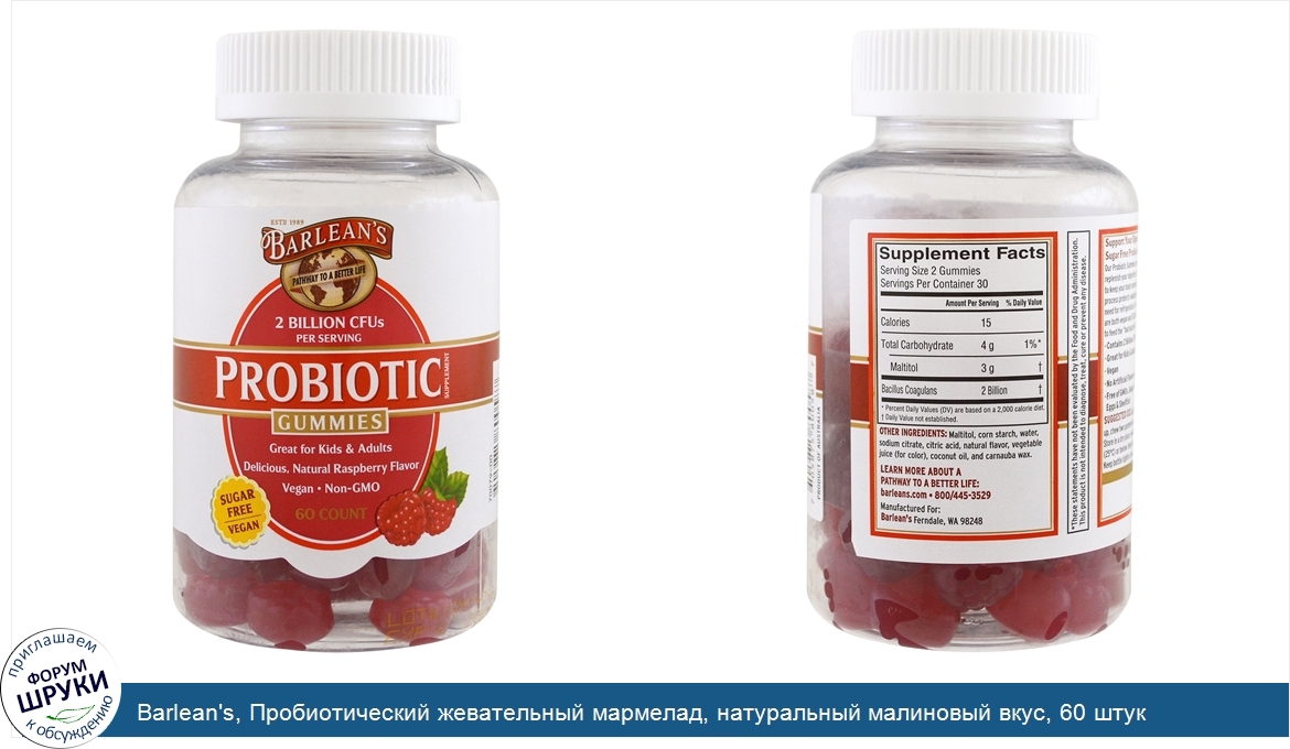 Друзья, если у вас есть отзыв/дополнение/комментарий/вопрос относительно Barlean's, Пробиотический жевательный мармелад, натуральный малиновый вкус, 60 штук - напишите его ответом в эту тему (это будет полезно всему сообществу в целом и вам в отдельности).
