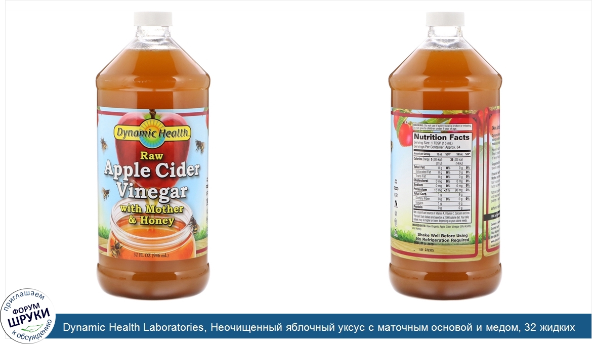 Друзья, если у вас есть отзыв/дополнение/комментарий/вопрос относительно Dynamic Health Laboratories, Неочищенный яблочный уксус с маточным основой и медом, 32 жидких унции (946 мл) - напишите его ответом в эту тему (это будет полезно всему сообществу в целом и вам в отдельности).