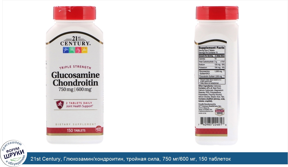 Друзья, если у вас есть отзыв/дополнение/комментарий/вопрос относительно 21st Century, Глюкозамин/хондроитин, тройная сила, 750 мг/600 мг, 150 таблеток - напишите его ответом в эту тему (это будет полезно всему сообществу в целом и вам в отдельности).