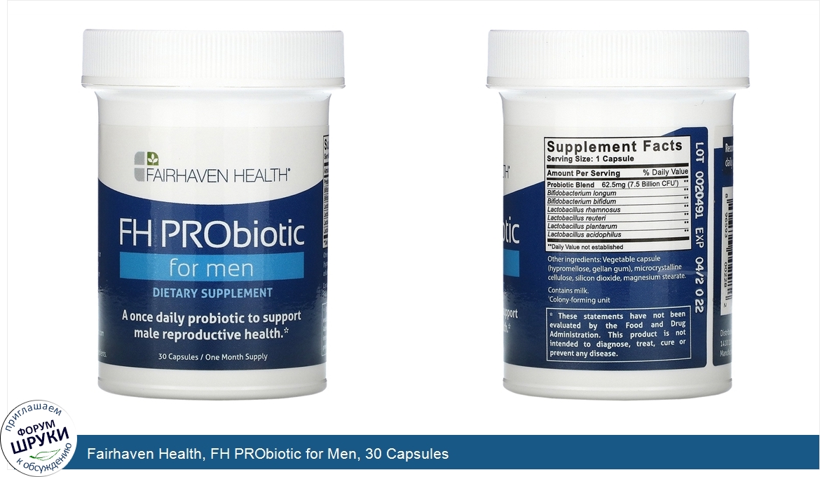 [DESCRIPT]Dietary Supplement. A Once Daily Probiotic to Support Male Reproductive Health. One Month Supply. FH PRObiotic is formulated for the unique needs of men, with specific probiotic strains designed to support male reproductive health.[/DESCRIPT]... (описание дополняется)
