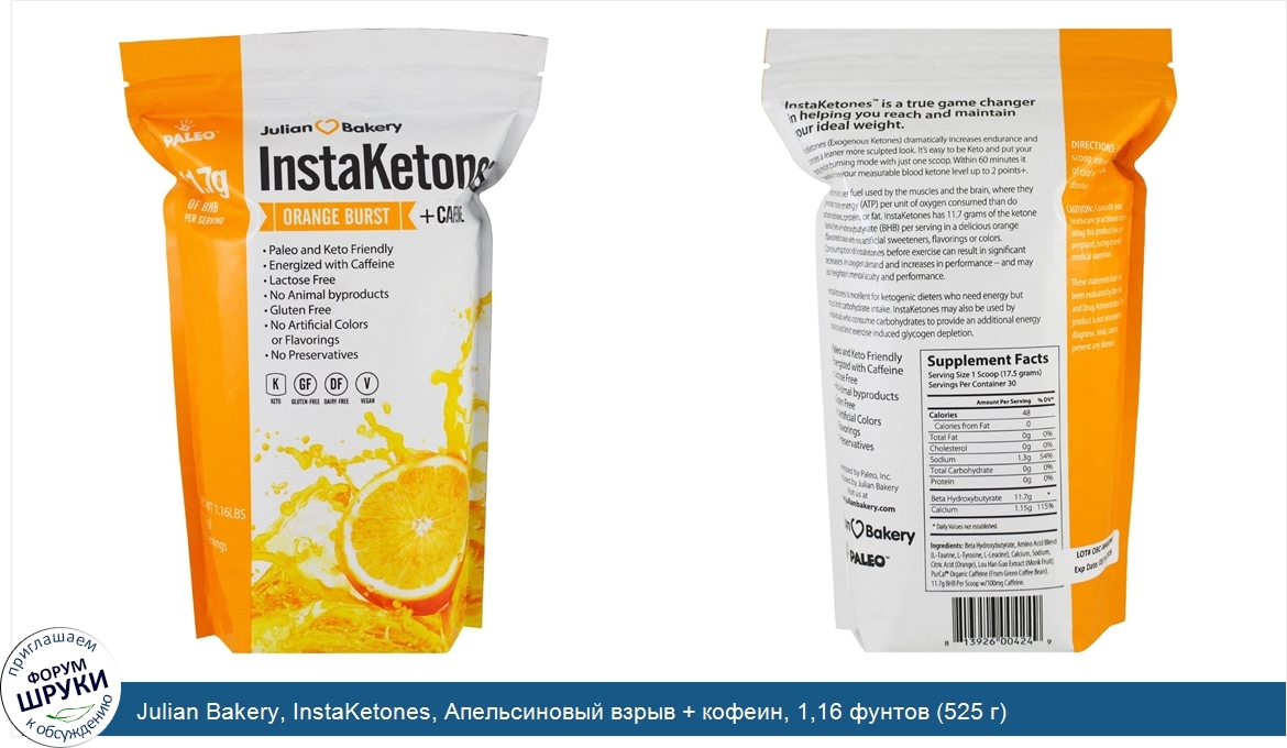 ru Julian Bakery, InstaKetones, Апельсиновый взрыв + кофеин, 1,16 фунтов (525 г)
