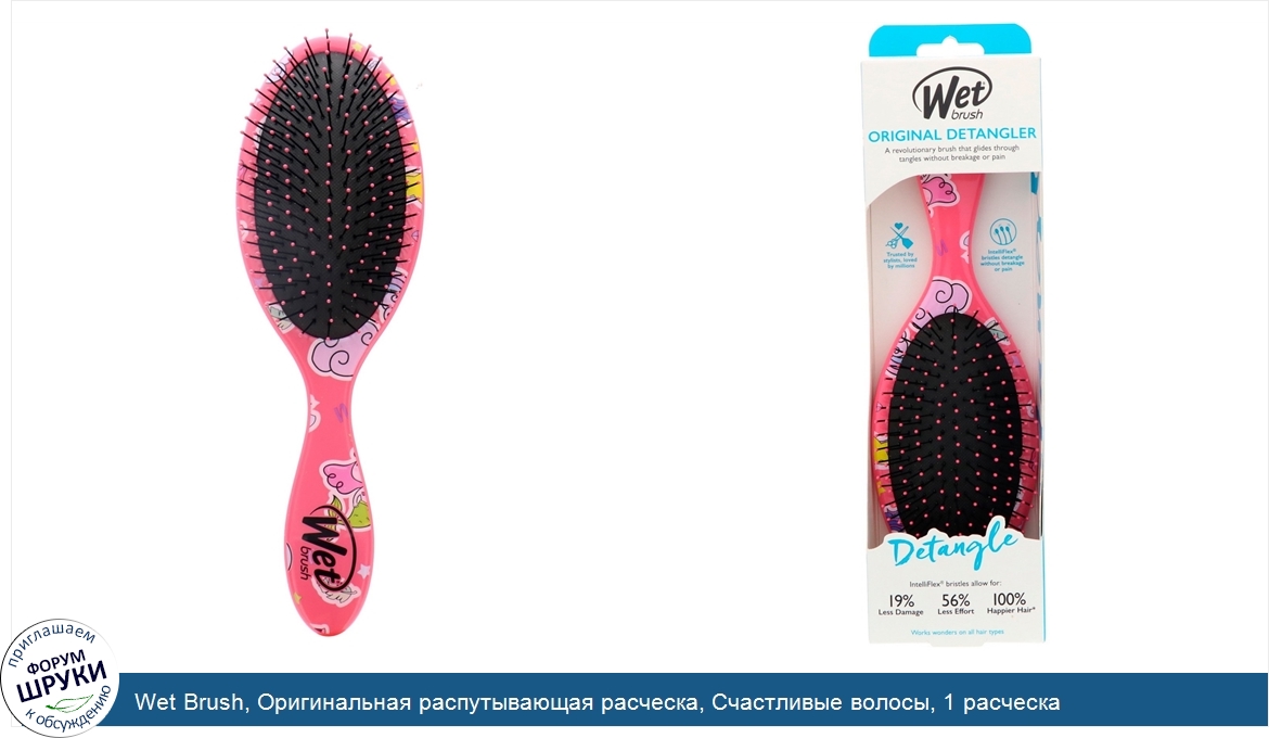 ru Wet Brush, Оригинальная распутывающая расческа, Счастливые волосы, 1 расческа