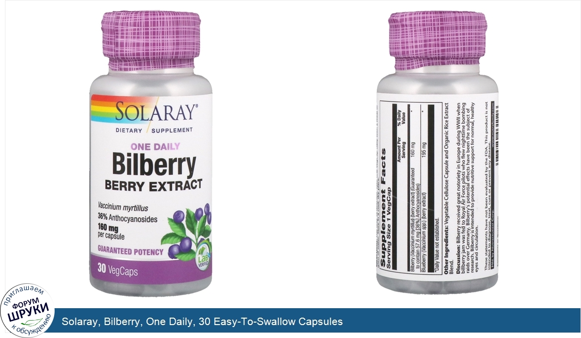 ru Solaray, Bilberry, One Daily, 30 Easy-To-Swallow Capsules