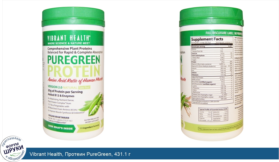Vibrant Health, Протеин PureGreen, 431.1 г