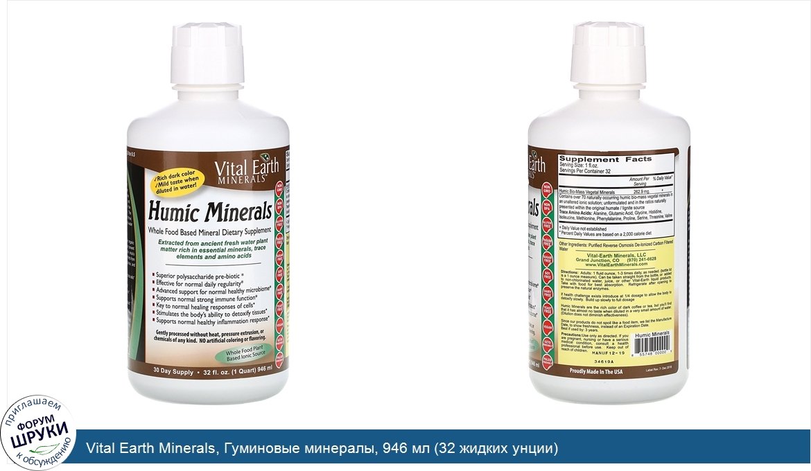 Друзья, если у вас есть отзыв/дополнение/комментарий/вопрос относительно Vital Earth Minerals, Гуминовые минералы, 946 мл (32 жидких унции) - напишите его ответом в эту тему (это будет полезно всему сообществу в целом и вам в отдельности).