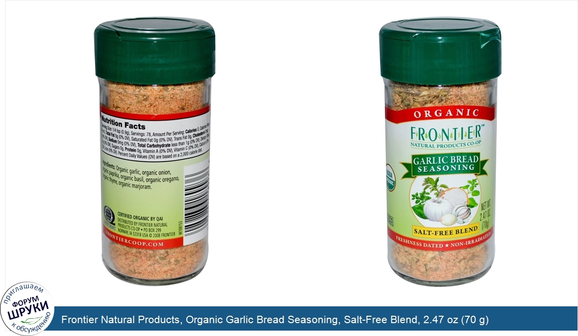 Друзья, если у вас есть отзыв/дополнение/комментарий/вопрос относительно Frontier Natural Products, Organic Garlic Bread Seasoning, Salt-Free Blend, 2.47 oz (70 g) - напишите его ответом в эту тему (это будет полезно всему сообществу в целом и вам в отдельности).