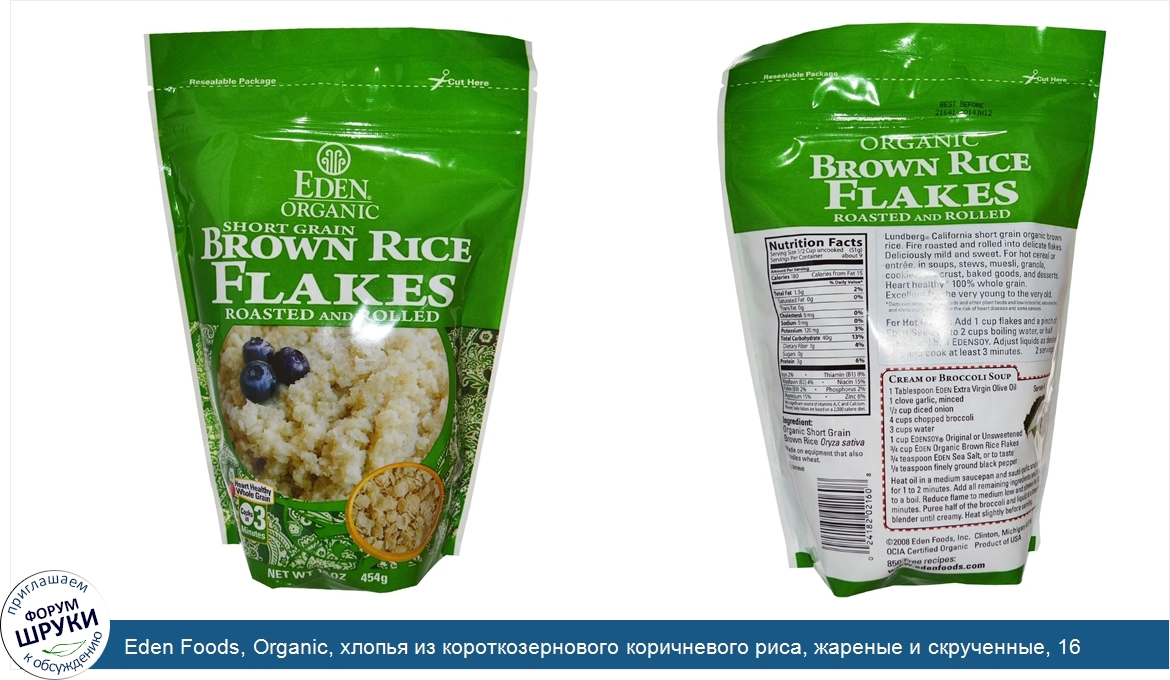 Друзья, если у вас есть отзыв/дополнение/комментарий/вопрос относительно Eden Foods, Organic, хлопья из короткозернового коричневого риса, жареные и скрученные, 16 унций (45 г) - напишите его ответом в эту тему (это будет полезно всему сообществу в целом и вам в отдельности).