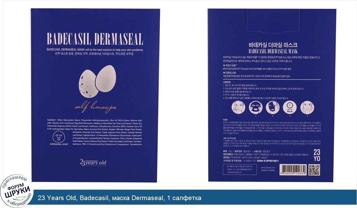 Друзья, если у вас есть отзыв/дополнение/комментарий/вопрос относительно 23 Years Old, Badecasil, маска Dermaseal, 1 салфетка - напишите его ответом в эту тему (это будет полезно всему сообществу в целом и вам в отдельности).