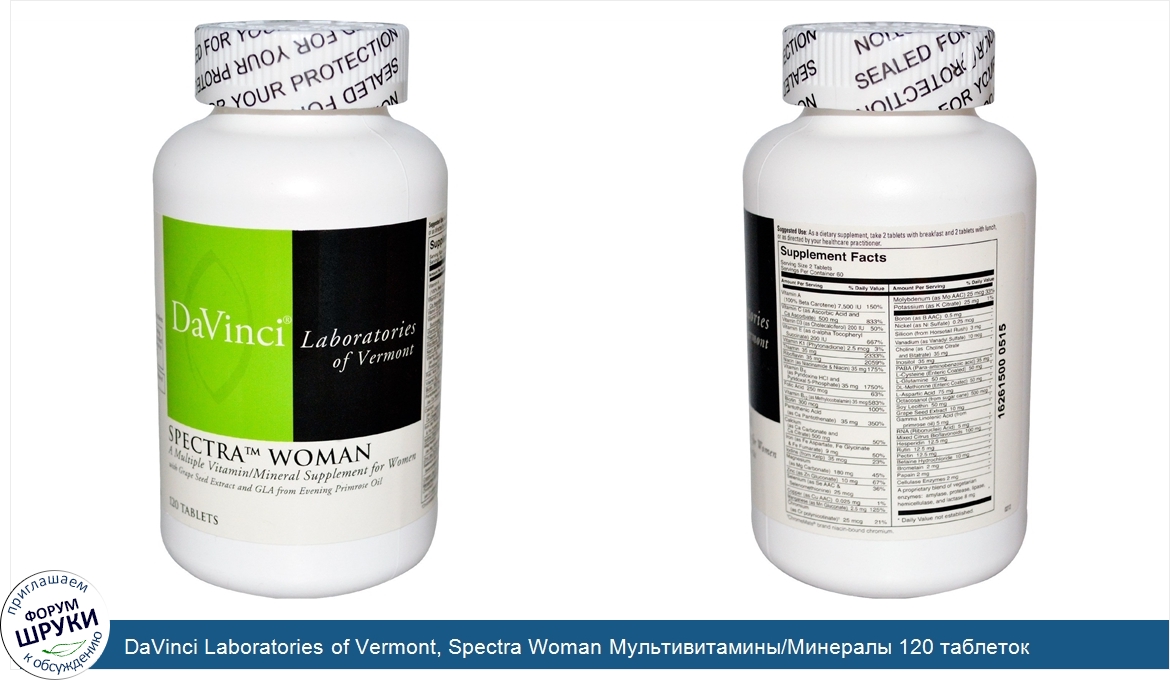 Друзья, если у вас есть отзыв/дополнение/комментарий/вопрос относительно DaVinci Laboratories of Vermont, Spectra Woman Мультивитамины/Минералы 120 таблеток - напишите его ответом в эту тему (это будет полезно всему сообществу в целом и вам в отдельности).