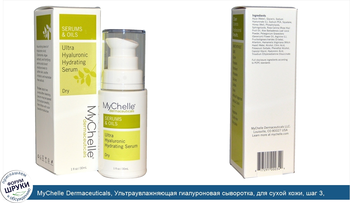 Друзья, если у вас есть отзыв/дополнение/комментарий/вопрос относительно MyChelle Dermaceuticals, Ультраувлажняющая гиалуроновая сыворотка, для сухой кожи, шаг 3, 30 мл - напишите его ответом в эту тему (это будет полезно всему сообществу в целом и вам в отдельности).
