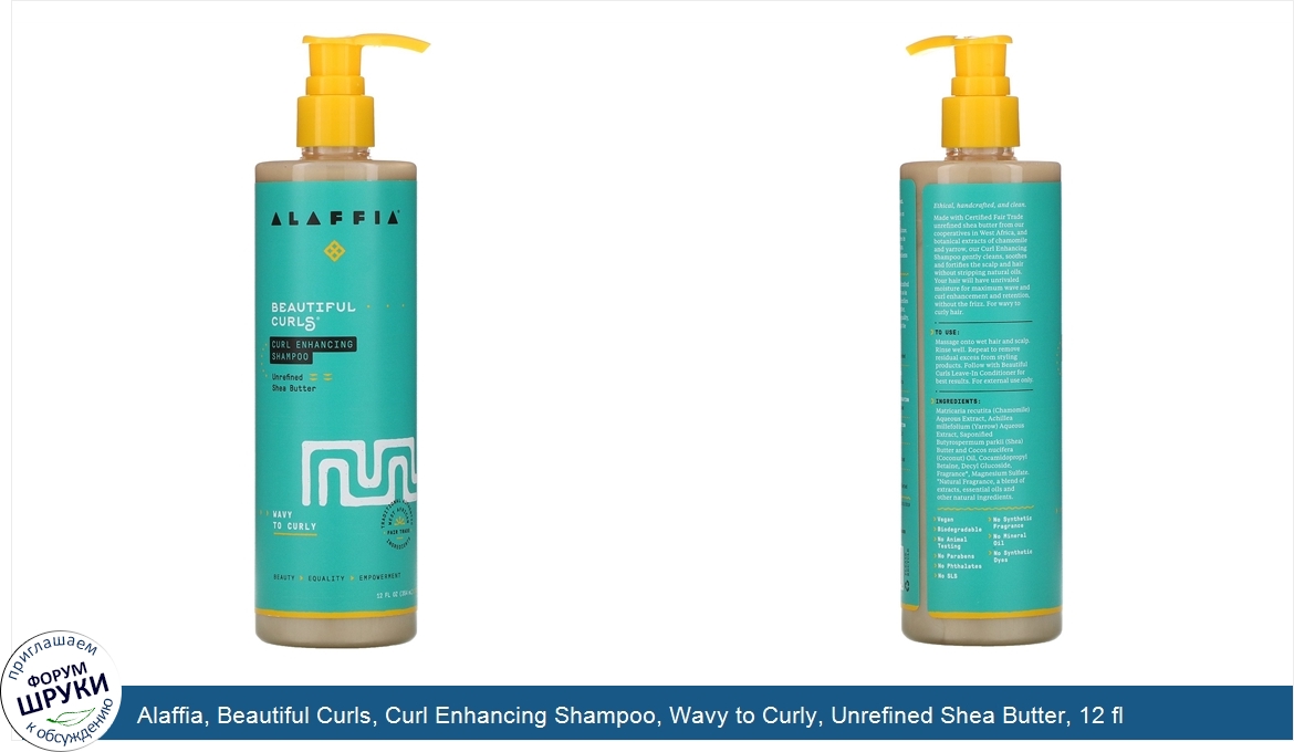 [DESCRIPT]Beauty - Equality - Empowerment. Traditional Authentic West African Fair Trade Ingredients. Vegan. Biodegradable. No Animal Testing. No Parabens. No Phthalates. No SLS. No Synthetic Fragrance. No Mineral Oil. No Synthetic Dyes. Made with love and respect. Alaffia is a social enterprise on a mission to create a more sustainable and equitable future. Our women-led cooperatives in West Africa produce heritage, nutrient-rich African ingredients rooted in tradition. Ethical, handcrafted, and clean. Made with Certified Fair Trade unrefined shea butter from our cooperatives in West Africa, and botanical extracts of chamomile and yarrow, our Curl Enhancing Shampoo gently cleans, soothes and fortifies the scalp and hair without stripping natural oils.Your hair will have unrivaled moisture for maximum wave and curl enhancement and retention, without the frizz. For wavy to curly hair.[/DESCRIPT]... (описание дополняется)