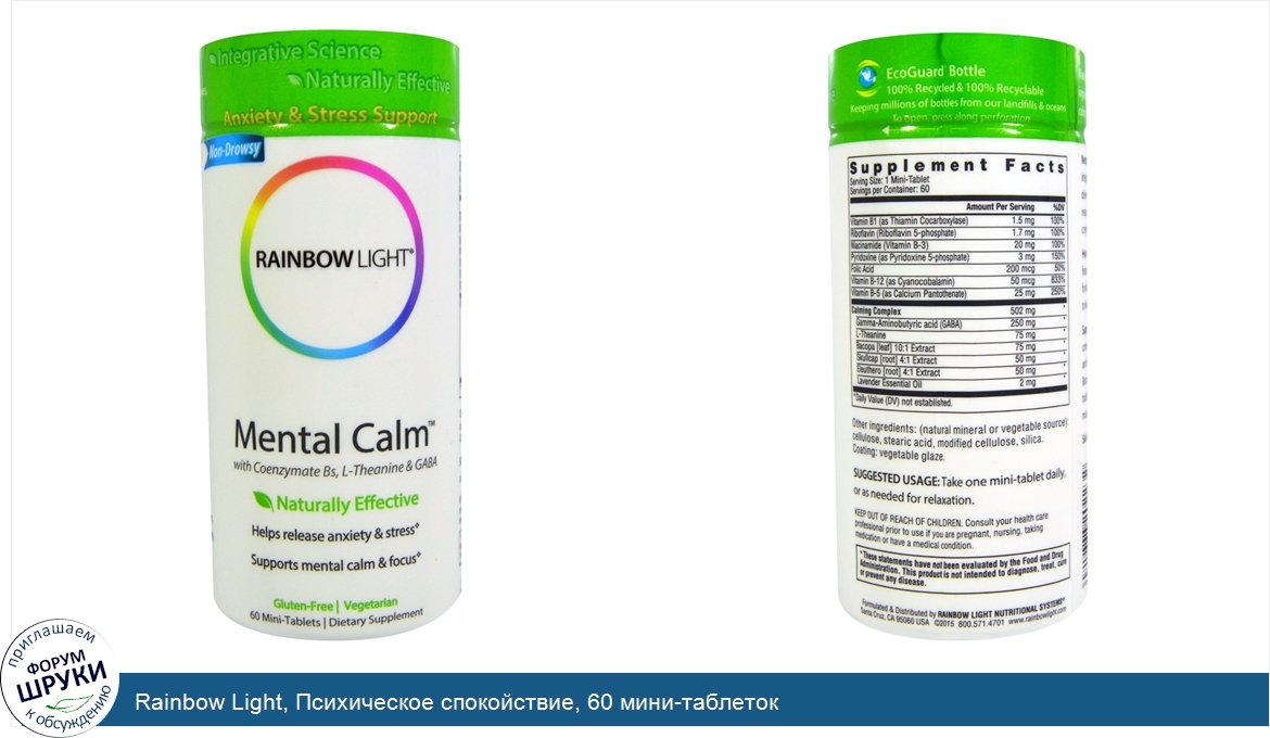 Друзья, если у вас есть отзыв/дополнение/комментарий/вопрос относительно Rainbow Light, Психическое спокойствие, 60 мини-таблеток - напишите его ответом в эту тему (это будет полезно всему сообществу в целом и вам в отдельности).