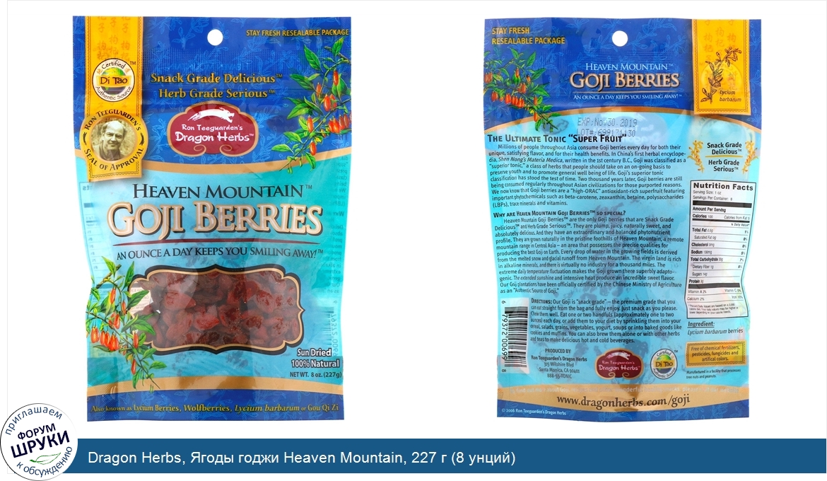 Друзья, если у вас есть отзыв/дополнение/комментарий/вопрос относительно Dragon Herbs, Ягоды годжи Heaven Mountain, 227 г (8 унций) - напишите его ответом в эту тему (это будет полезно всему сообществу в целом и вам в отдельности).