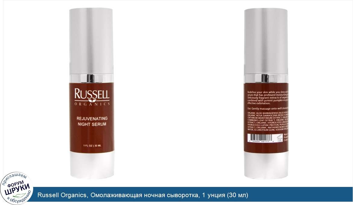 Russell Organics, Омолаживающая ночная сыворотка, 1 унция (30 мл)