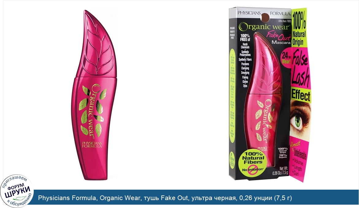 Physicians Formula, Organic Wear, тушь Fake Out, ультра черная, 0,26 унции (7,5 г)