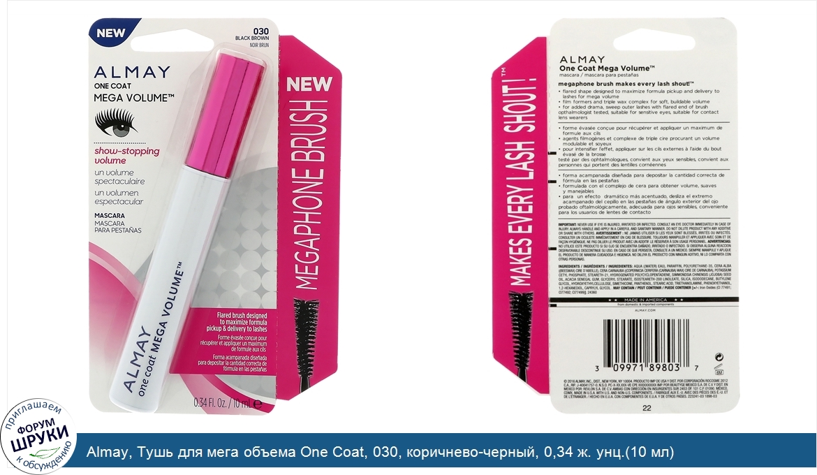 Друзья, если у вас есть отзыв/дополнение/комментарий/вопрос относительно Almay, Тушь для мега объема One Coat, 030, коричнево-черный, 0,34 ж. унц.(10 мл) - напишите его ответом в эту тему (это будет полезно всему сообществу в целом и вам в отдельности).