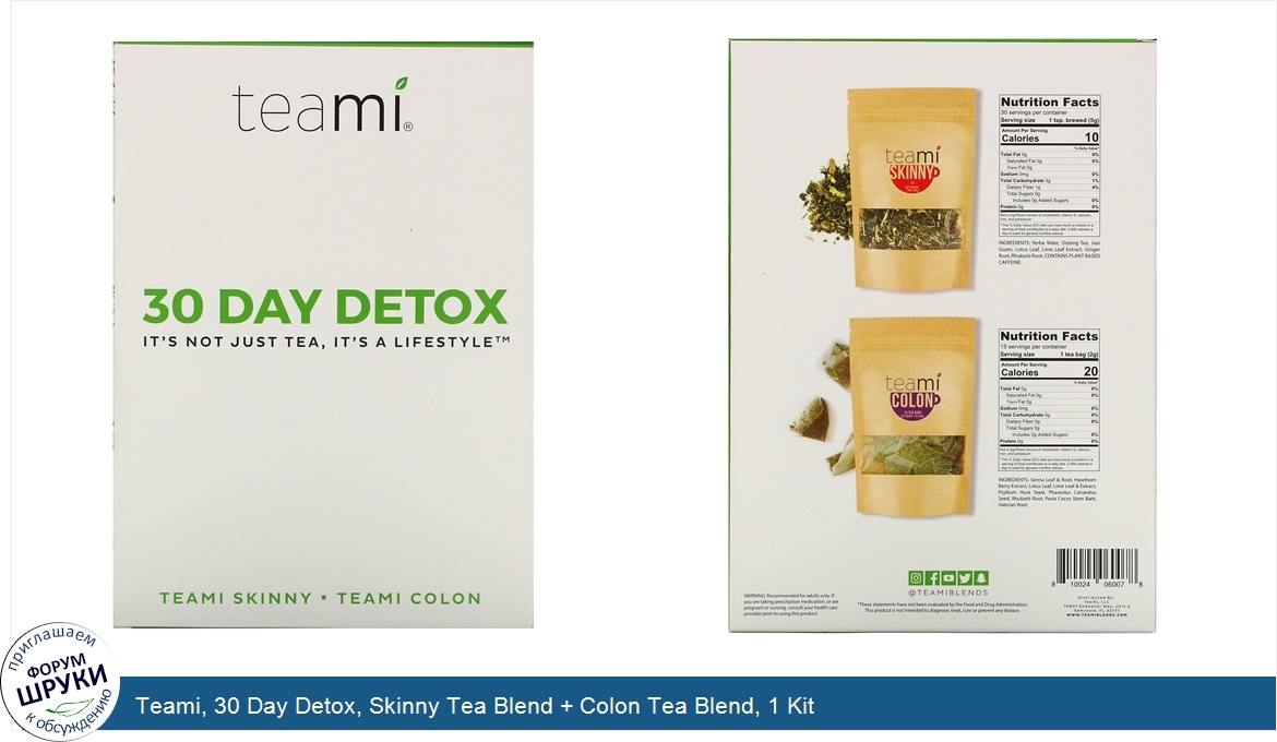 Друзья, если у вас есть отзыв/дополнение/комментарий/вопрос относительно Teami, 30 Day Detox, Skinny Tea Blend + Colon Tea Blend, 1 Kit - напишите его ответом в эту тему (это будет полезно всему сообществу в целом и вам в отдельности).