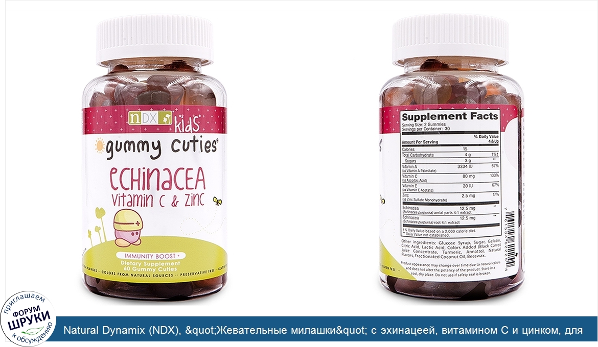Друзья, если у вас есть отзыв/дополнение/комментарий/вопрос относительно Natural Dynamix (NDX), "Жевательные милашки" с эхинацеей, витамином C и цинком, для детей, 60 штук - напишите его ответом в эту тему (это будет полезно всему сообществу в целом и вам в отдельности).