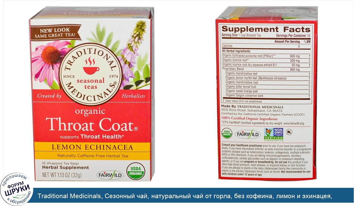 Друзья, если у вас есть отзыв/дополнение/комментарий/вопрос относительно Traditional Medicinals, Сезонный чай, натуральный чай от горла, без кофеина, лимон и эхинацея, 16 завернутых пакетиков, 1.13 унций (32 г) - напишите его ответом в эту тему (это будет полезно всему сообществу в целом и вам в отдельности).