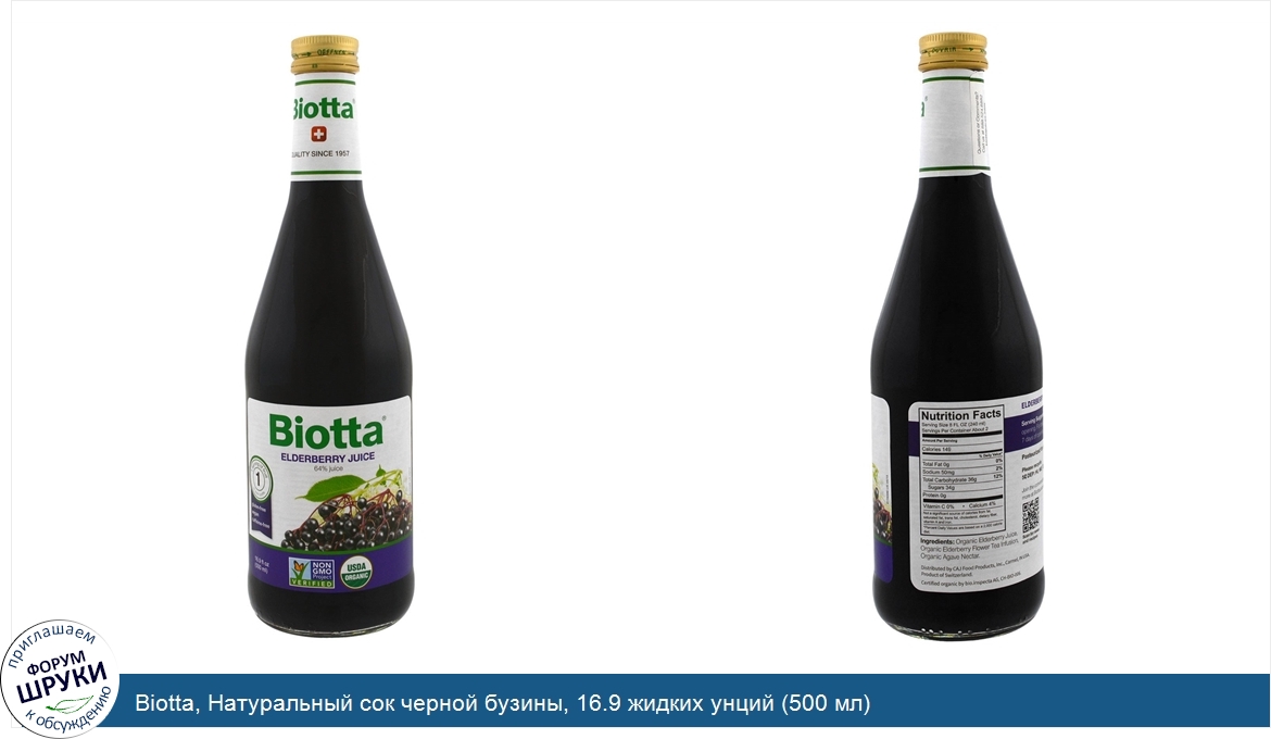Biotta, Натуральный сок черной бузины, 16.9 жидких унций (500 мл)