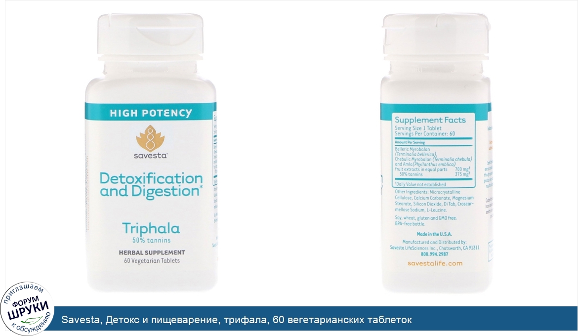 Друзья, если у вас есть отзыв/дополнение/комментарий/вопрос относительно Savesta, Детокс и пищеварение, трифала, 60 вегетарианских таблеток - напишите его ответом в эту тему (это будет полезно всему сообществу в целом и вам в отдельности).
