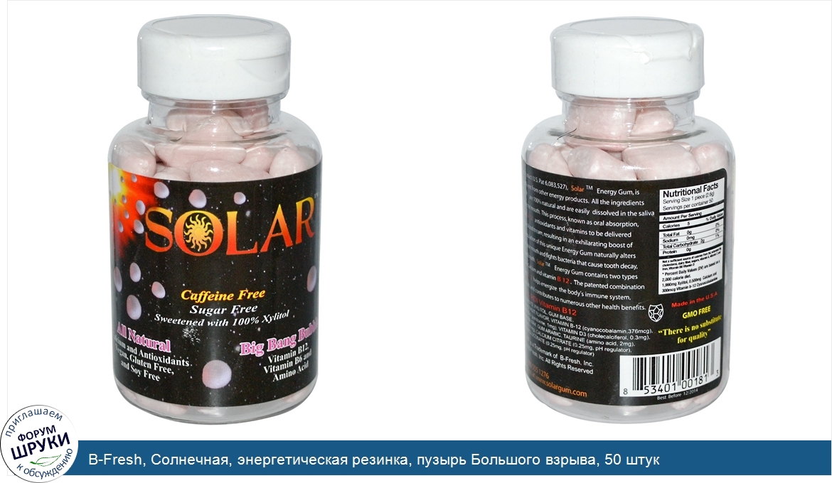 B-Fresh, Солнечная, энергетическая резинка, пузырь Большого взрыва, 50 штук