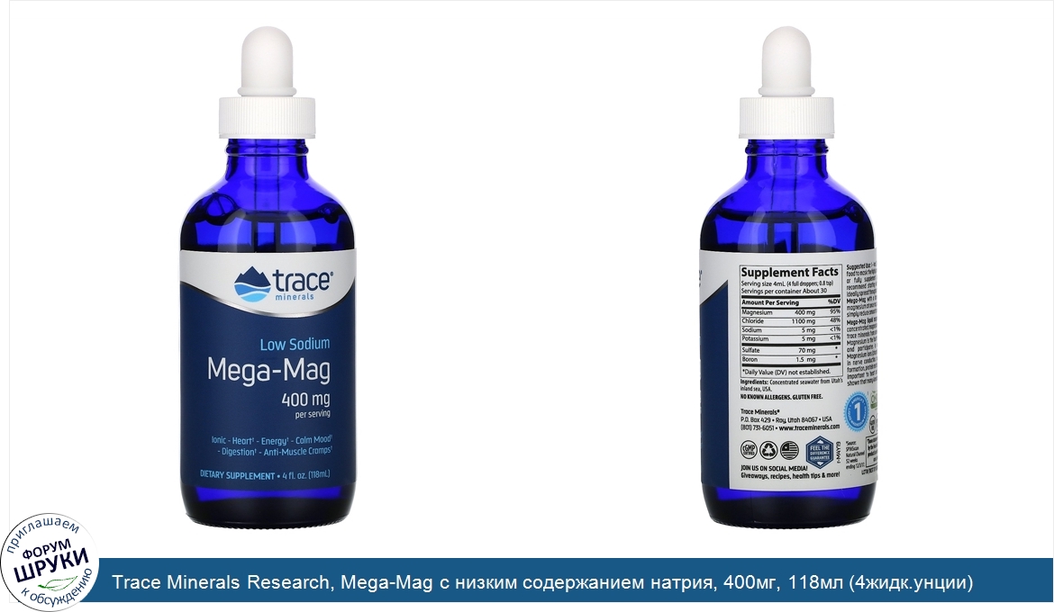 ru Trace Minerals Research, Mega-Mag с низким содержанием натрия, 400мг, 118мл (4жидк.унции)