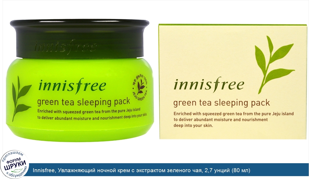 Innisfree, Увлажняющий ночной крем с экстрактом зеленого чая, 2,7 унций (80 мл)