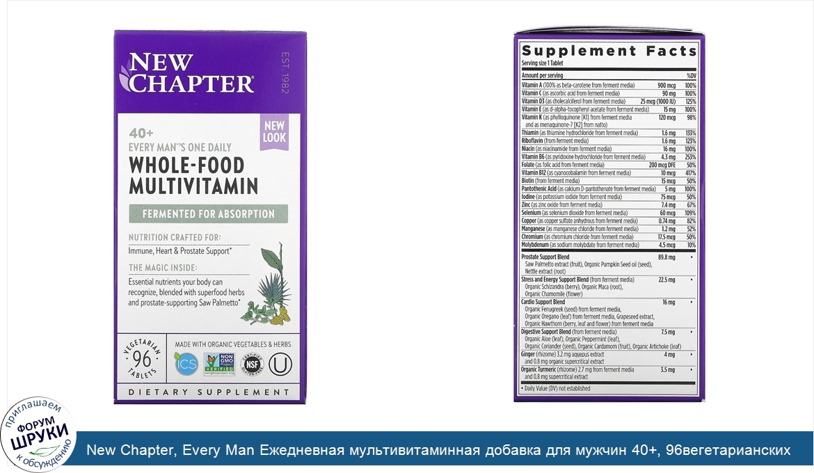 Друзья, если у вас есть отзыв/дополнение/комментарий/вопрос относительно New Chapter, Every Man Ежедневная мультивитаминная добавка для мужчин 40+, 96вегетарианских таблеток - напишите его ответом в эту тему (это будет полезно всему сообществу в целом и вам в отдельности).