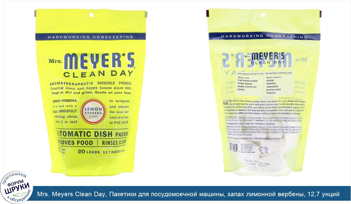 Друзья, если у вас есть отзыв/дополнение/комментарий/вопрос относительно Mrs. Meyers Clean Day, Пакетики для посудомоечной машины, запах лимонной вербены, 12,7 унций (360 г) - напишите его ответом в эту тему (это будет полезно всему сообществу в целом и вам в отдельности).