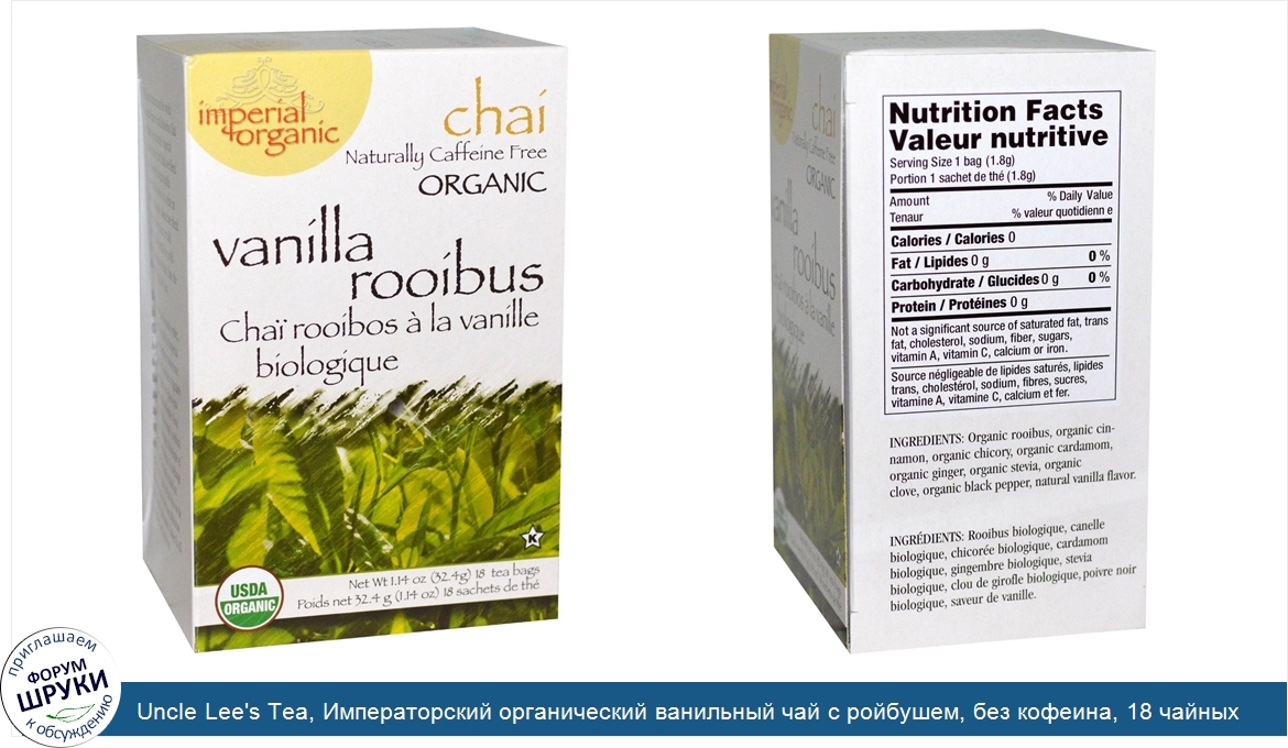 Друзья, если у вас есть отзыв/дополнение/комментарий/вопрос относительно Uncle Lee's Tea, Императорский органический ванильный чай с ройбушем, без кофеина, 18 чайных пакетиков, 1,14 унции (32,4 г) - напишите его ответом в эту тему (это будет полезно всему сообществу в целом и вам в отдельности).