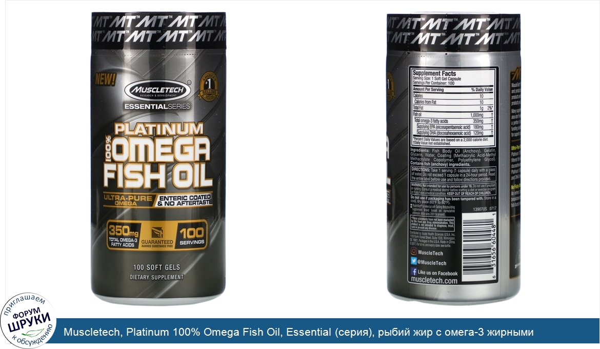 Друзья, если у вас есть отзыв/дополнение/комментарий/вопрос относительно Muscletech, Platinum 100% Omega Fish Oil, Essential (серия), рыбий жир с омега-3 жирными кислотами, 100мягких желейных капсул - напишите его ответом в эту тему (это будет полезно всему сообществу в целом и вам в отдельности).