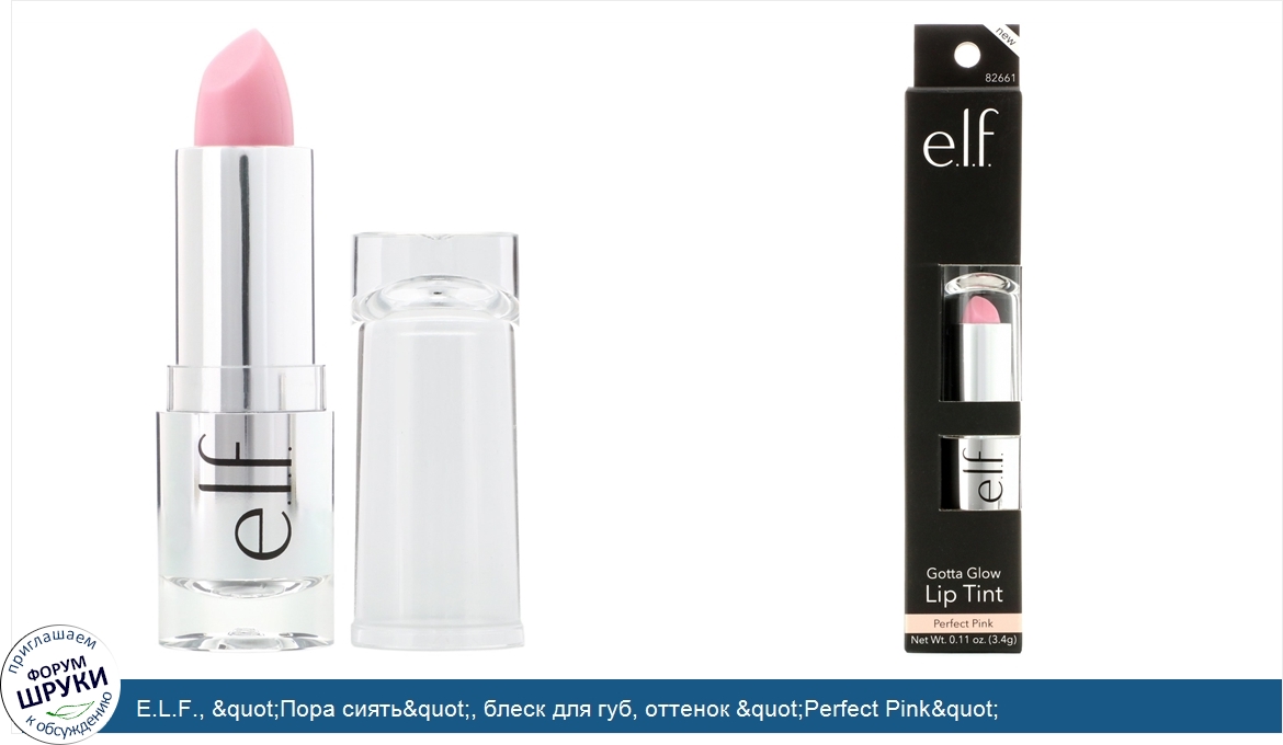 ru E.L.F., "Пора сиять", блеск для губ, оттенок "Perfect Pink" ("идеальный розовый"), 0,11 унции (3,4 г)