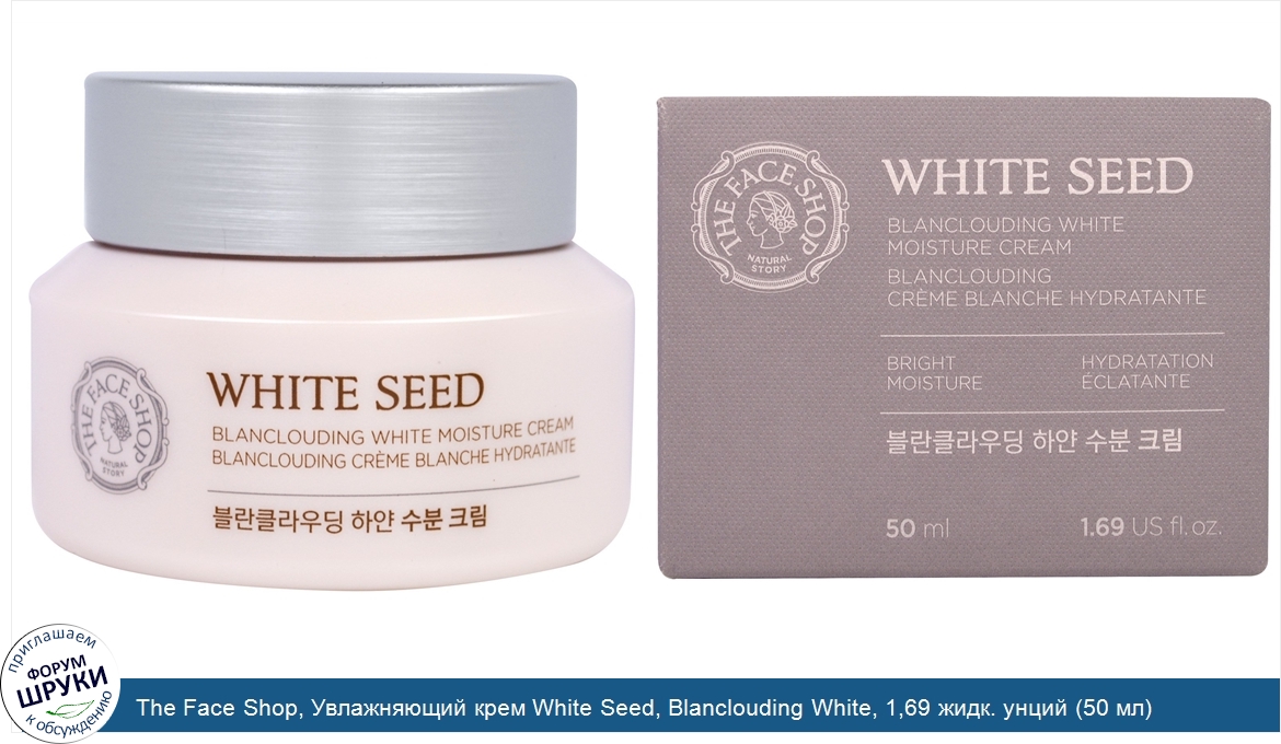 Друзья, если у вас есть отзыв/дополнение/комментарий/вопрос относительно The Face Shop, Увлажняющий крем White Seed, Blanclouding White, 1,69 жидк. унций (50 мл) - напишите его ответом в эту тему (это будет полезно всему сообществу в целом и вам в отдельности).