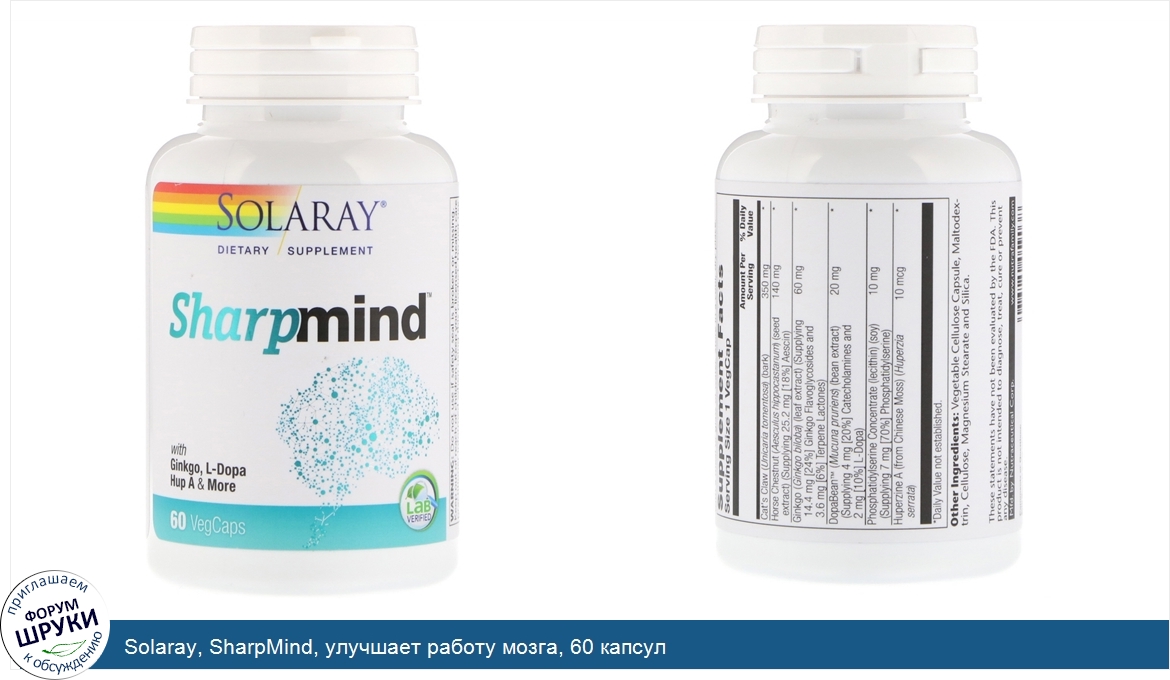 Друзья, если у вас есть отзыв/дополнение/комментарий/вопрос относительно Solaray, SharpMind, улучшает работу мозга, 60 капсул - напишите его ответом в эту тему (это будет полезно всему сообществу в целом и вам в отдельности).