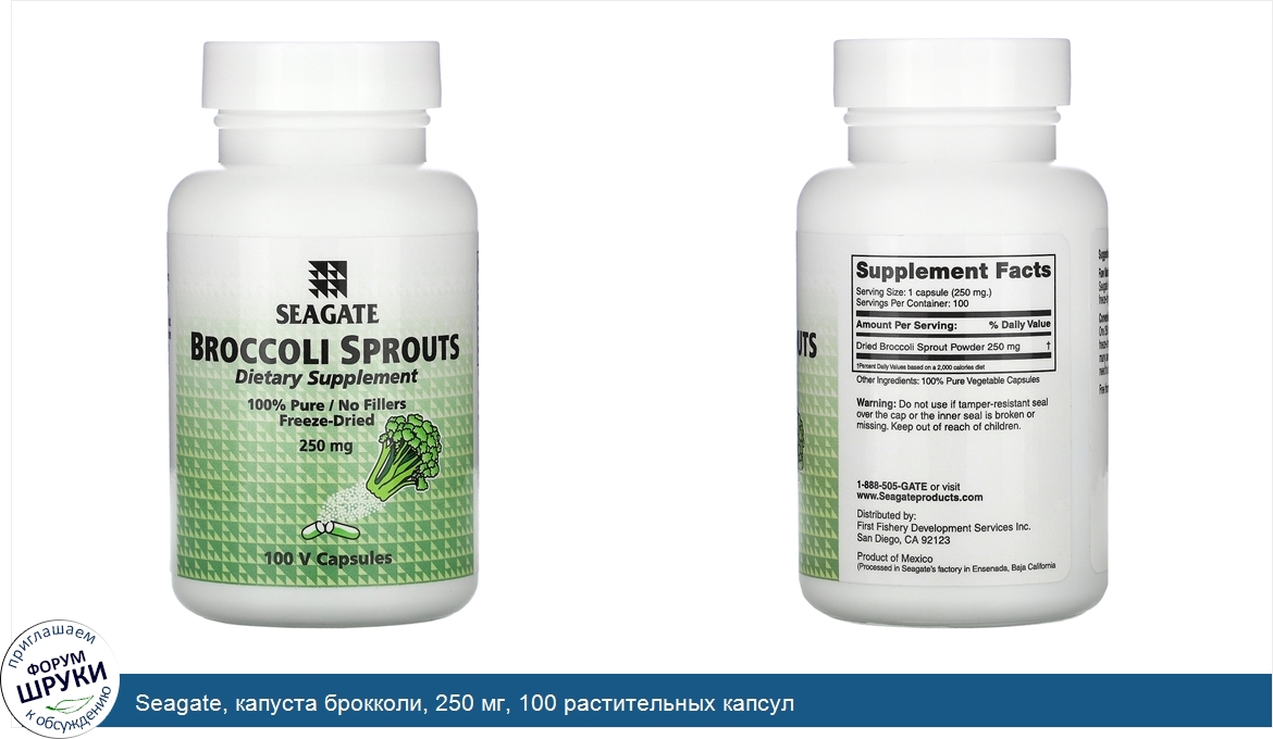 Seagate, капуста брокколи, 250 мг, 100 растительных капсул