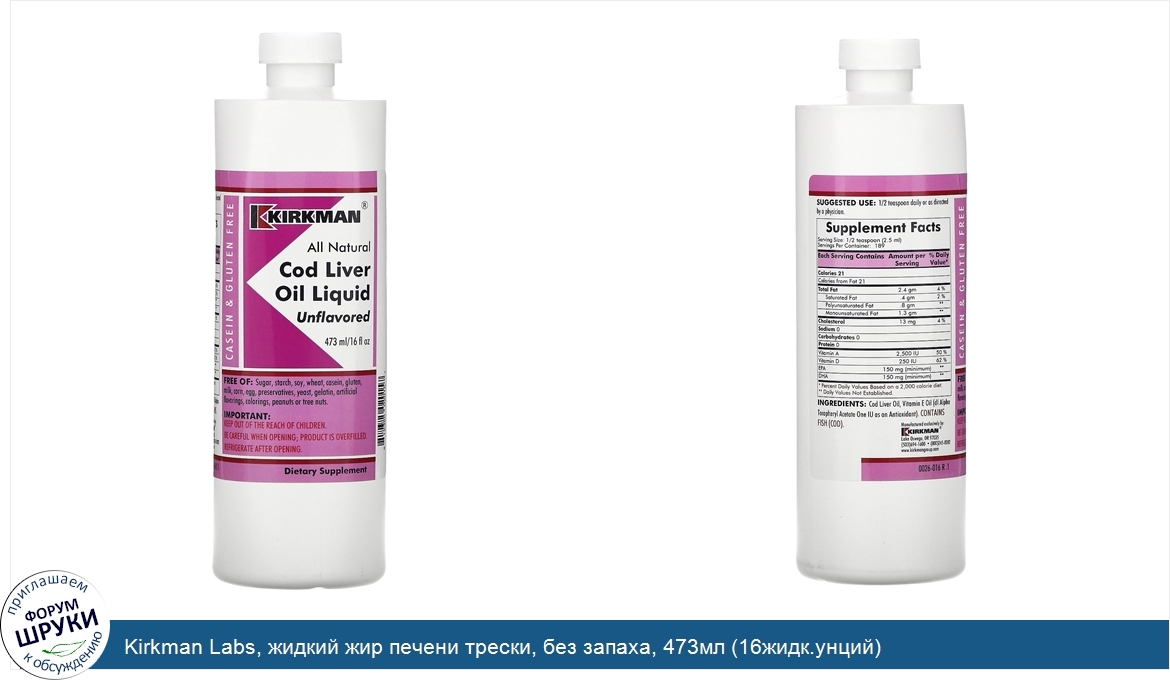 ru Kirkman Labs, жидкий жир печени трески, без запаха, 473мл (16жидк.унций)