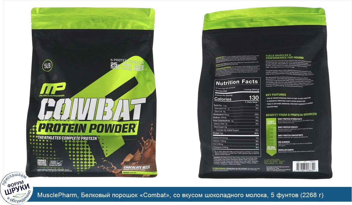 Друзья, если у вас есть отзыв/дополнение/комментарий/вопрос относительно MusclePharm, Белковый порошок «Combat», со вкусом шоколадного молока, 5 фунтов (2268 г) - напишите его ответом в эту тему (это будет полезно всему сообществу в целом и вам в отдельности).