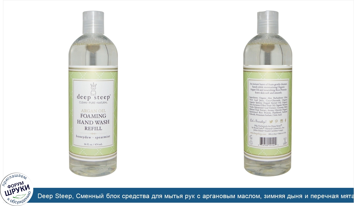 Deep Steep, Сменный блок средства для мытья рук с аргановым маслом, зимняя дыня и перечная мята, 16 жидких унций (474 мл)