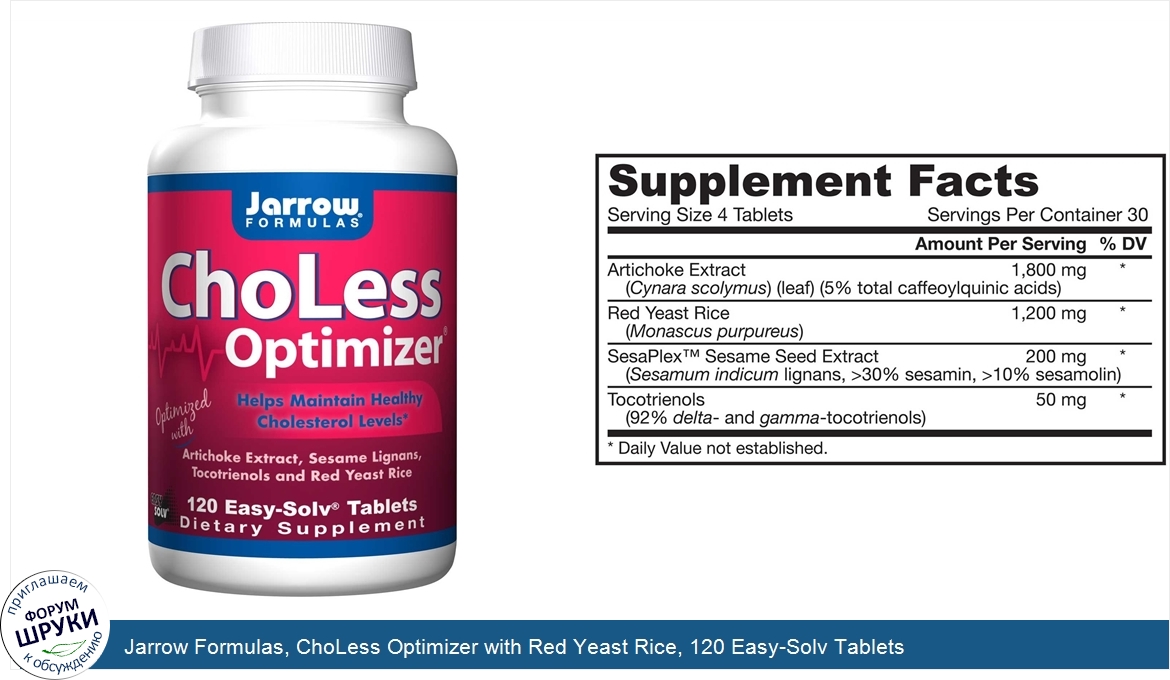 Друзья, если у вас есть отзыв/дополнение/комментарий/вопрос относительно Jarrow Formulas, ChoLess Optimizer with Red Yeast Rice, 120 Easy-Solv Tablets - напишите его ответом в эту тему (это будет полезно всему сообществу в целом и вам в отдельности).