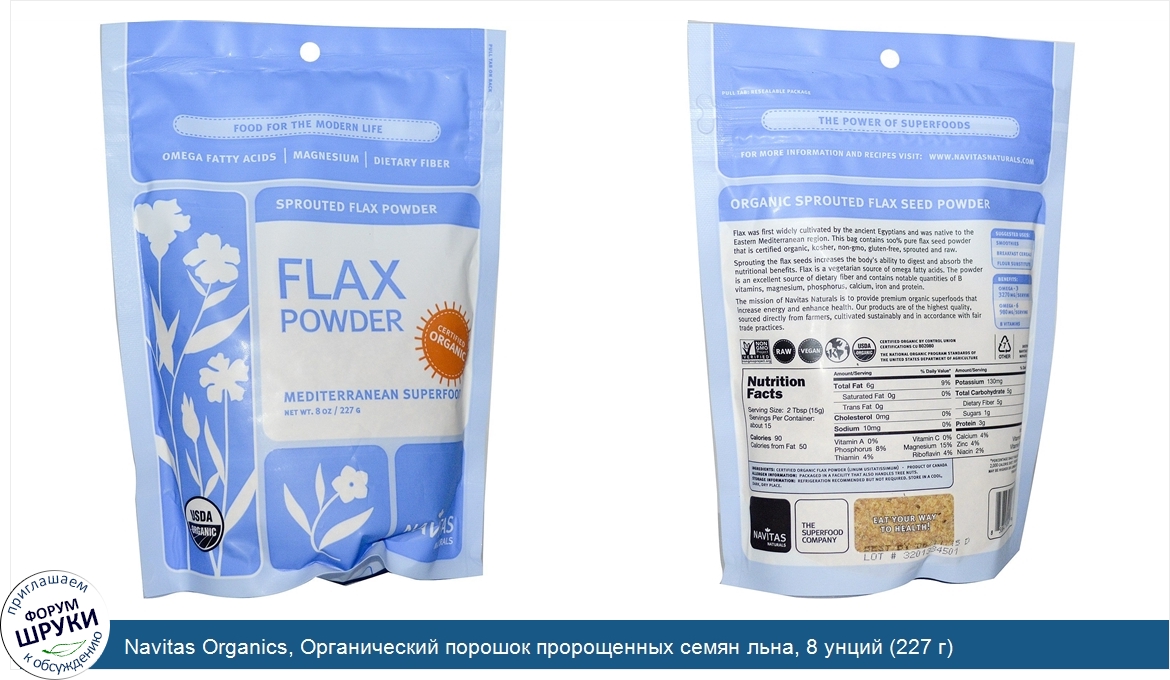 Друзья, если у вас есть отзыв/дополнение/комментарий/вопрос относительно Navitas Organics, Органический порошок пророщенных семян льна, 8 унций (227 г) - напишите его ответом в эту тему (это будет полезно всему сообществу в целом и вам в отдельности).