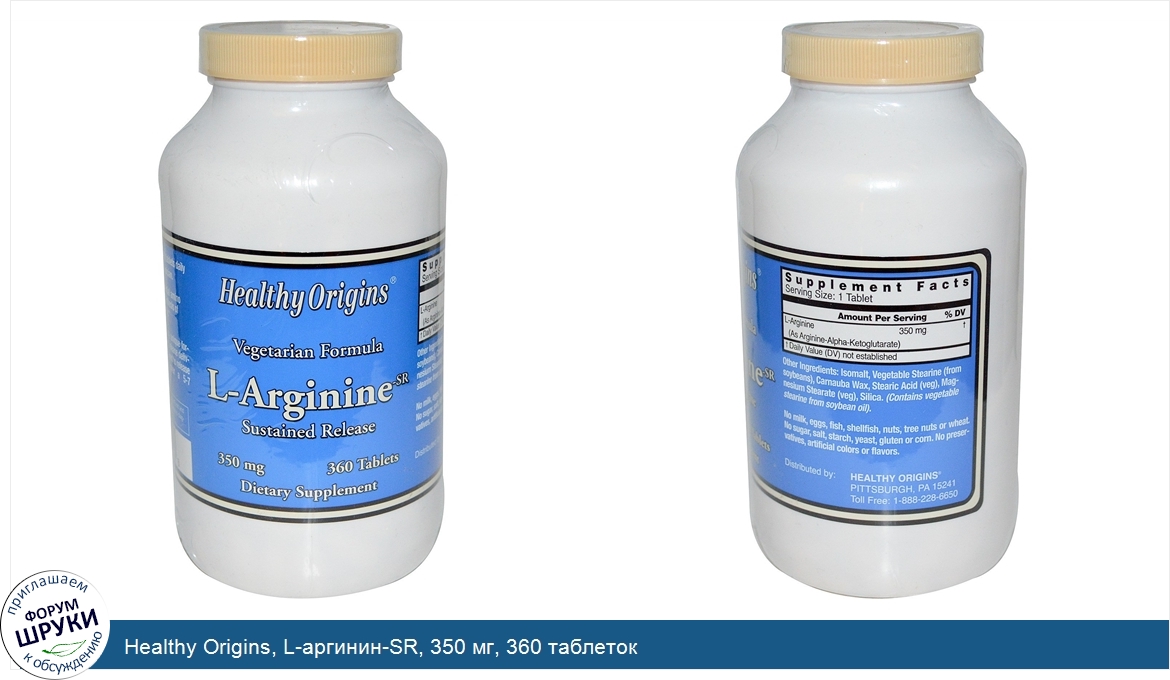 ru Healthy Origins, L-аргинин-SR, 350 мг, 360 таблеток