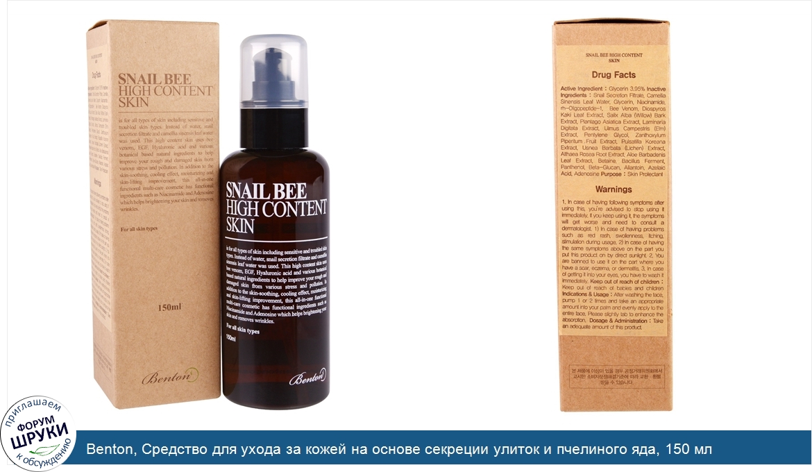 Друзья, если у вас есть отзыв/дополнение/комментарий/вопрос относительно Benton, Средство для ухода за кожей на основе секреции улиток и пчелиного яда, 150 мл - напишите его ответом в эту тему (это будет полезно всему сообществу в целом и вам в отдельности).