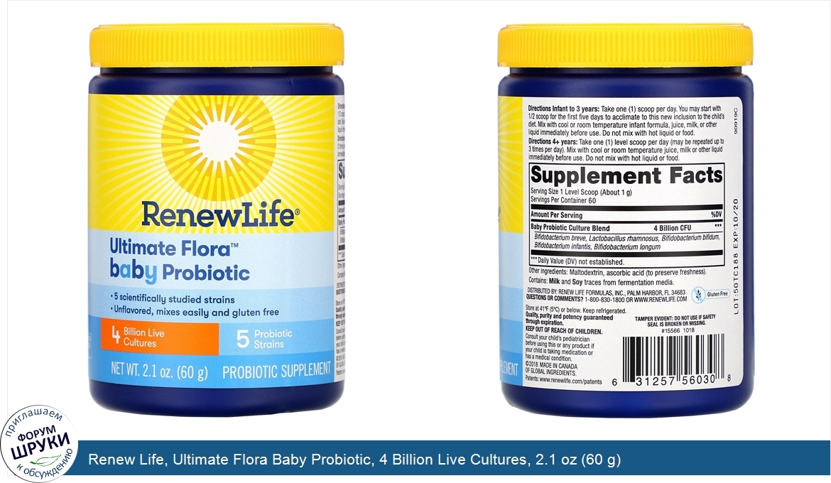 Друзья, если у вас есть отзыв/дополнение/комментарий/вопрос относительно Renew Life, Ultimate Flora Baby Probiotic, 4 Billion Live Cultures, 2.1 oz (60 g) - напишите его ответом в эту тему (это будет полезно всему сообществу в целом и вам в отдельности).