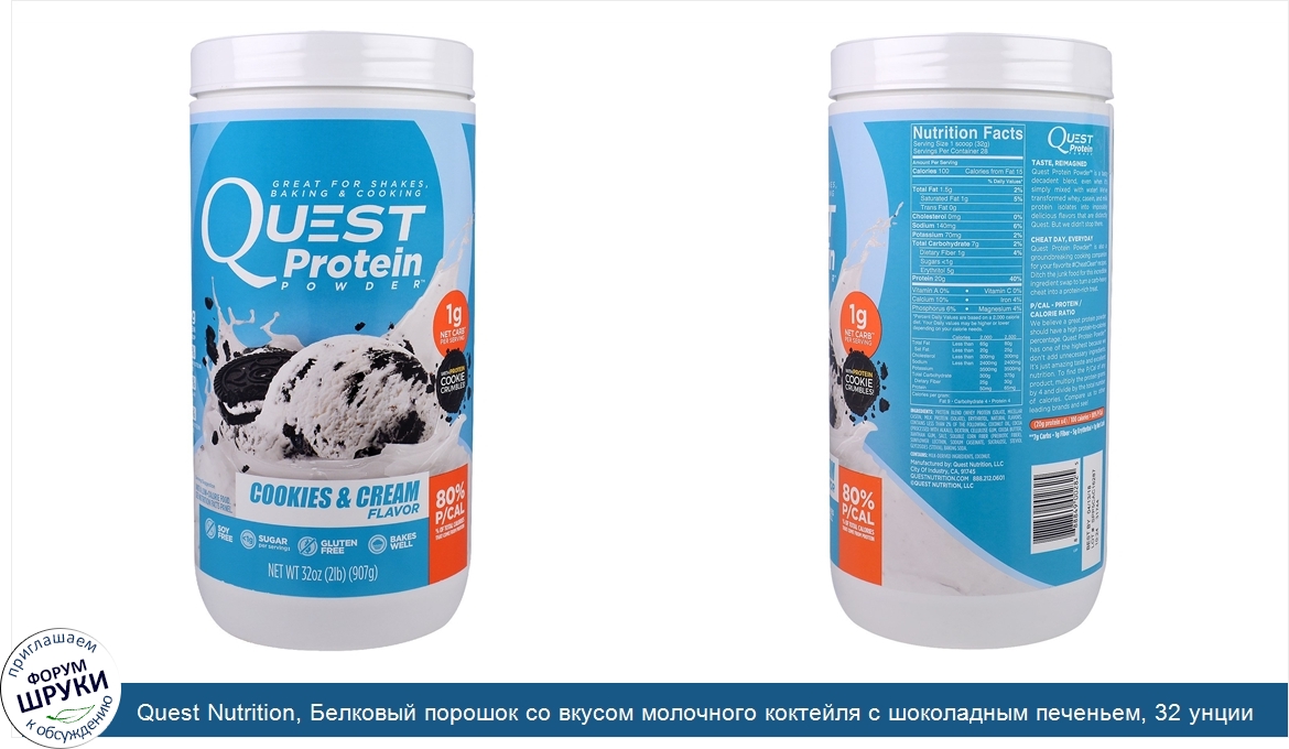 Друзья, если у вас есть отзыв/дополнение/комментарий/вопрос относительно Quest Nutrition, Белковый порошок со вкусом молочного коктейля с шоколадным печеньем, 32 унции (907 г) - напишите его ответом в эту тему (это будет полезно всему сообществу в целом и вам в отдельности).