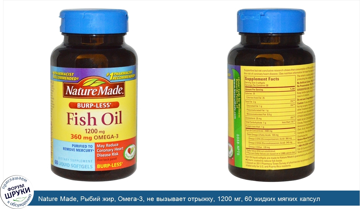 Друзья, если у вас есть отзыв/дополнение/комментарий/вопрос относительно Nature Made, Рыбий жир, Омега-3, не вызывает отрыжку, 1200 мг, 60 жидких мягких капсул - напишите его ответом в эту тему (это будет полезно всему сообществу в целом и вам в отдельности).