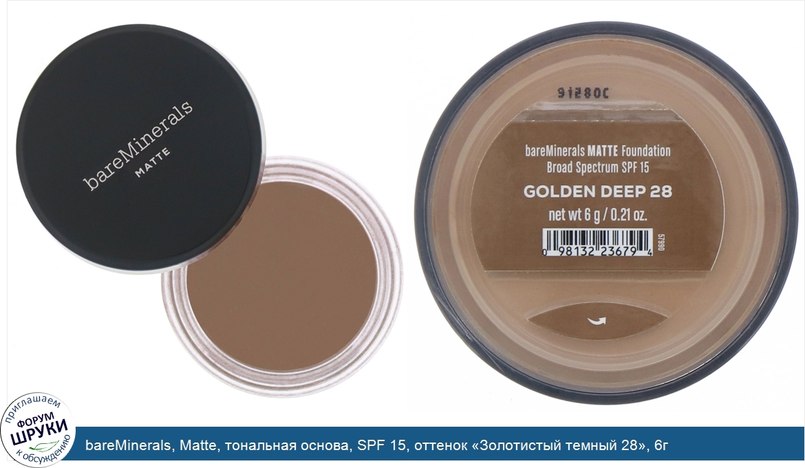 bareMinerals, Matte, тональная основа, SPF 15, оттенок «Золотистый темный 28», 6г