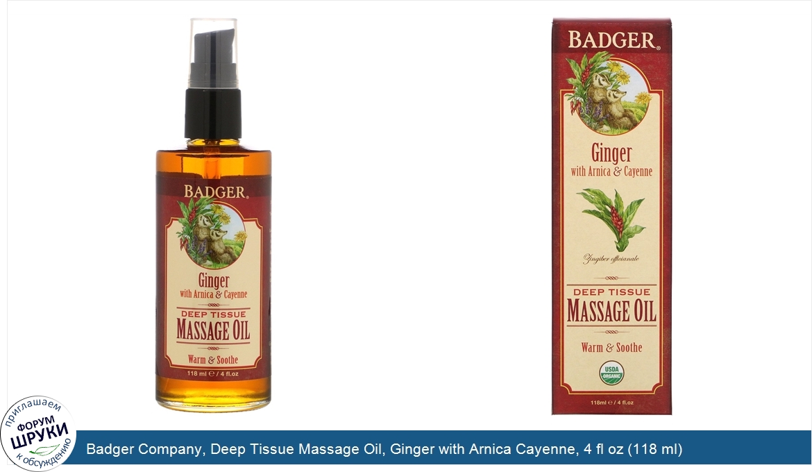 Друзья, если у вас есть отзыв/дополнение/комментарий/вопрос относительно Badger Company, Deep Tissue Massage Oil, Ginger with Arnica Cayenne, 4 fl oz (118 ml) - напишите его ответом в эту тему (это будет полезно всему сообществу в целом и вам в отдельности).