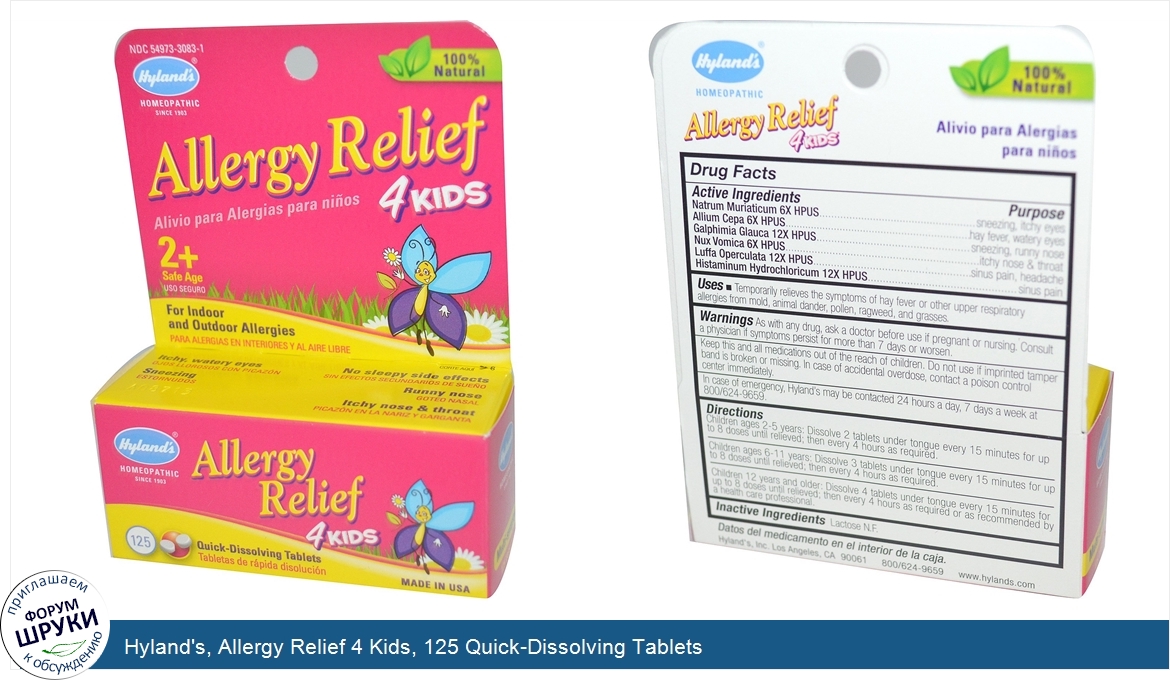 Друзья, если у вас есть отзыв/дополнение/комментарий/вопрос относительно Hyland's, Allergy Relief 4 Kids, 125 Quick-Dissolving Tablets - напишите его ответом в эту тему (это будет полезно всему сообществу в целом и вам в отдельности).