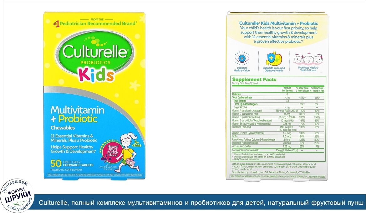 Друзья, если у вас есть отзыв/дополнение/комментарий/вопрос относительно Culturelle, полный комплекс мультивитаминов и пробиотиков для детей, натуральный фруктовый пунш, 50жевательных таблеток - напишите его ответом в эту тему (это будет полезно всему сообществу в целом и вам в отдельности).